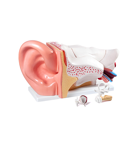有外耳、中耳、內(nèi)耳組成的解剖模型。可以直觀看到聽(tīng)骨鏈,半規(guī)管及耳蝸。適合于擺放在公司或助聽(tīng)器專營(yíng)店顯眼的位置,以營(yíng)造專業(yè)的氣氛。通過(guò)模型的講解,增進(jìn)與客戶間的溝通和交流。